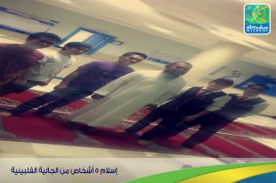 أسلم بحمد الله (5) أشخاص من الجالية الفلبينية وذلك يوم الجمعة الموافق 27/ 08 / 1437 هـ ببملتقى الصفوه – الرياض ويأتي ذلك بفضل من الله وتوفيقه ثم بالجهود المخلصة للعاملين بالمكتب التعاوني للدعوة والإرشاد وتوعية الجاليات بحي الصحافة – الرياض وبدعم المحسنين ومحبي الخير نسأل الله أن يكتب لهم الأجر …