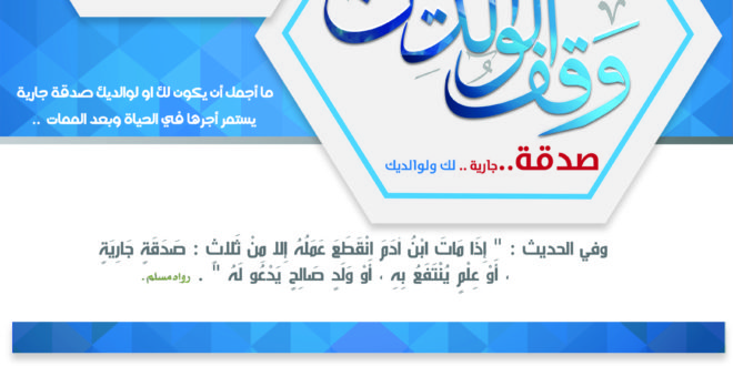 وقف الوالدين إن كنت تبحث عن صدقة جارية ريعها يشمل مشاريع دعوية متنوعة وشاملة فهي هنا في هذا المشروع . اجعل لوالديك وقفاً ولمن تحب ما أجمل أن تهدي والديك ومن تحب صدقة جارية عن أبي هريرة رضي الله عنه قال: قال النبي صلى الله عليه وسلم إذا مات الإنسان …