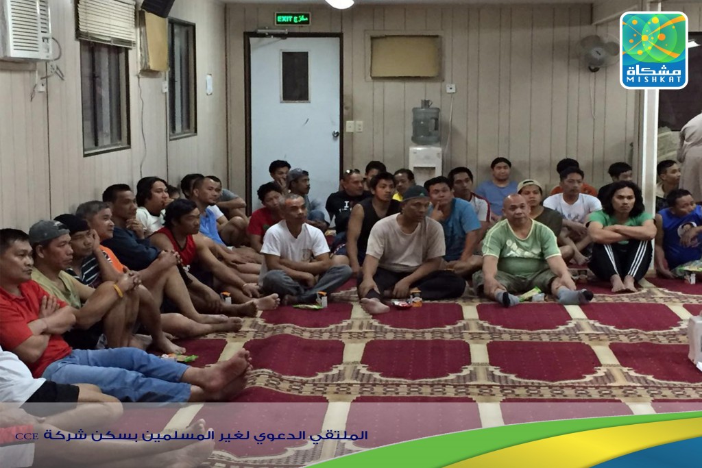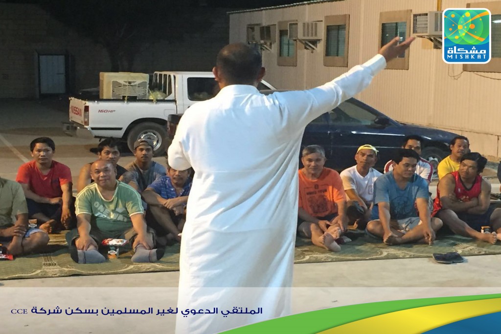 اقيم اليوم الثلاثاء بتاريخ ١٤٣٧/٧/١٢هـ ملتقى للناطقين الدعوي لغير المسلمين باللغة الفلبينية بسكن شركة CCE و الذي يسكن فيه أكثر من 1000 شخص و يستهدف غير المسلمين بحضور أحد الدعاة المميزين
