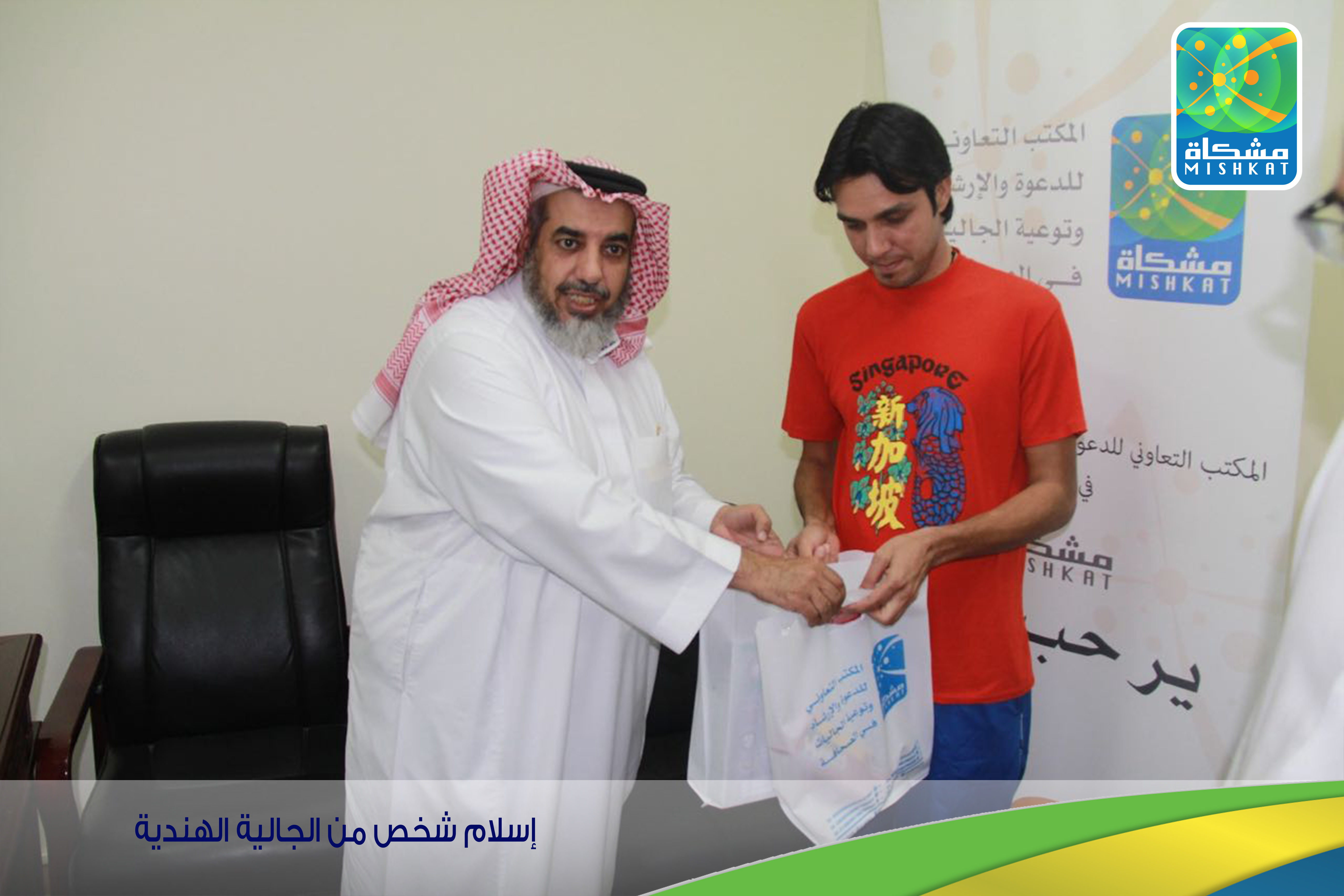 أسلم بحمد الله شخص من الجالية الهندية وذلك يوم الثلاثاء الموافق 16/ 09/ 1437 هـ