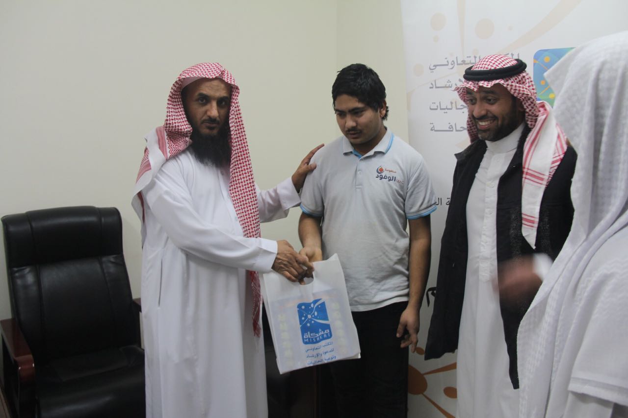 نزف لــكم البشرى ولله الحمد حمداً كثيراً في إسلام شخص من الجالية النيبالية بمكتب الدعوة بالصحافة – مشكاةونطقه الشهادة ولله الحمد ” أشهد أن لا إله إلا الله وأن محمداً رسول الله ” في يوم الأربعاء 29-3-1438هـ الموافق 28-12-2016م وذلك في مقر المكتب بحي الصحافة في شمال الرياض بحضور مدير إدارة الجاليات الشيخ علي القاسم