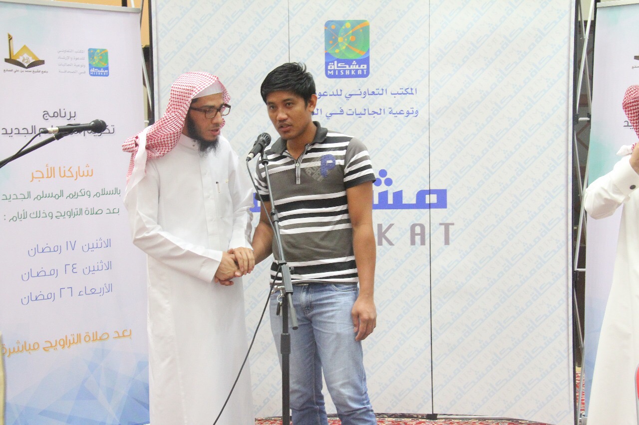 أقيم في يوم الإثنين 9/17 بعد صلاة التراويح مباشرة أولى أيام برنامج تكريم المسلمين الجدد ، والذي كان في جامع الصانع بحي الصحافة ، وقد تم تكريم 4 من الجالية الفلبينية بفضل الله تبارك وتعال .