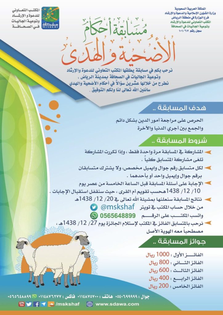 ( *لمسابقة أحكام الأضحية والهدي*)