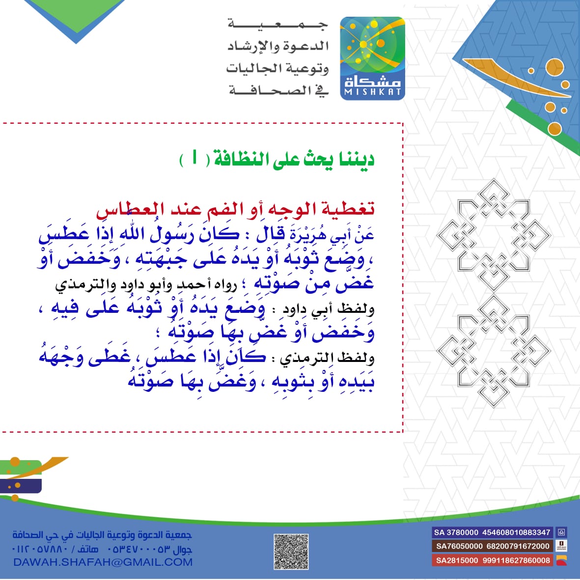 ديننا يحث على النظافة admin مارس 21, 2020 أخبار المكتب اضف تعليق 52 زيارة مقالات مشابهة تدشين الموقع الجديد للجمعية يوليو 15, 2021 الملتقيات الدعوية أغسطس 12, 2020 الجوالات الدعوية أغسطس 11, 2020 2020-03-21 admin شاركها Facebook Twitter Google + Stumbleupon LinkedIn Pinterest