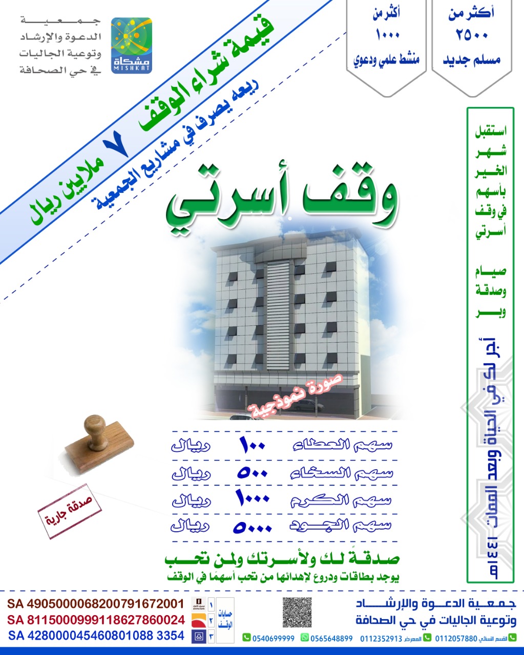 في المساهمة في وقف أسرتي لجمعية الدعوة والإرشاد وتوعية الجاليات في حي الصحافة بالرياض