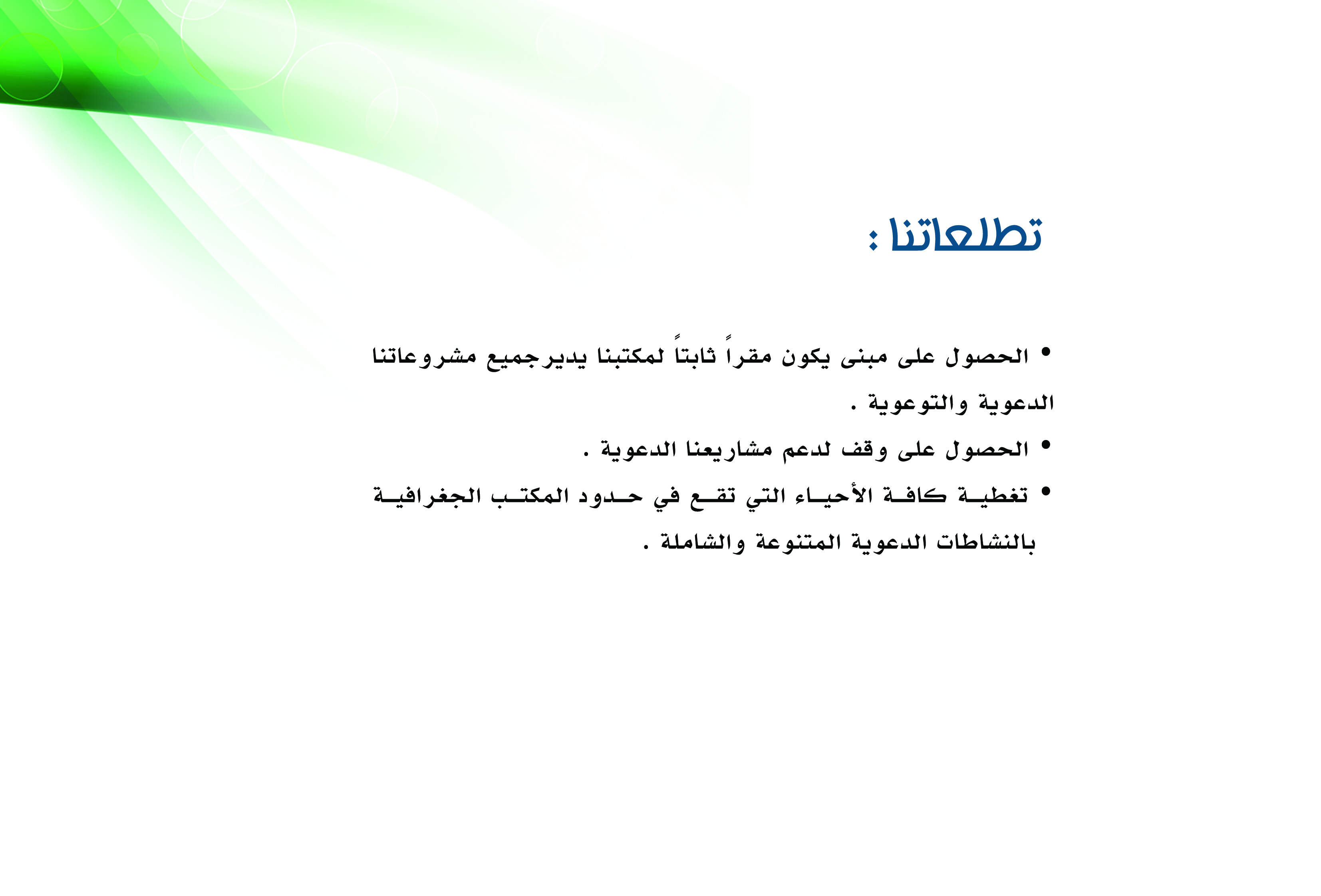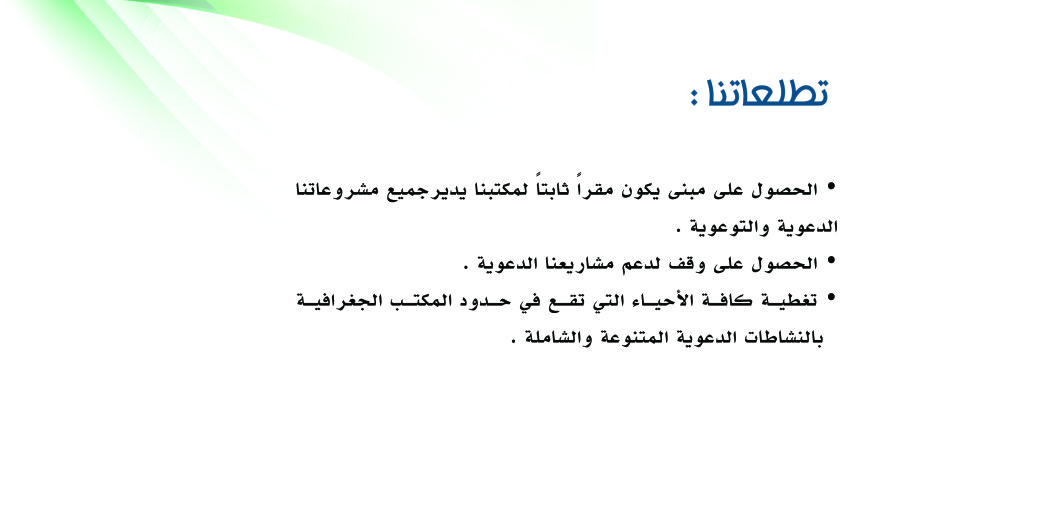 تطلعاتنا admin مايو 12, 2015 تعريف بالمكتب اضف تعليق 220 زيارة مقالات مشابهة الملتقى التعريفي لمكتب الدعوة والأرشاد وتوعية الجاليات بحي الصحافة ديسمبر 30, 2015 رؤيتنا مايو 12, 2015 الهيكل التنظيمي فبراير 3, 2015 رسالتنا فبراير 3, 2015 2015-05-12 admin شاركها Facebook Twitter Google + Stumbleupon LinkedIn Pinterest